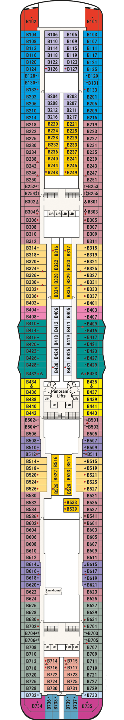 Wählen Sie zwischen Innenkabinen, Balkonkabinen Standard und Deluxe, Mini-Suiten sowie Suiten.